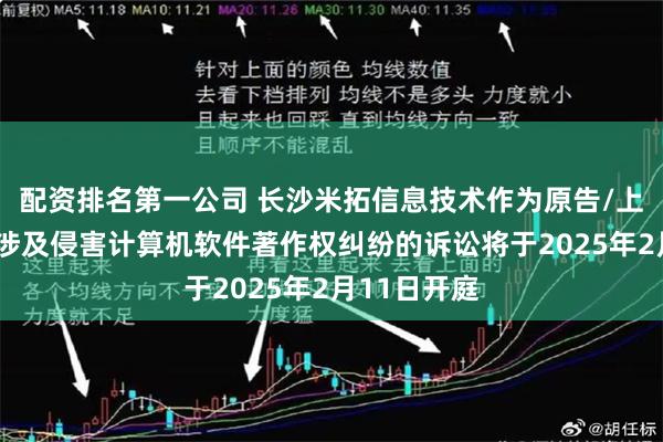 本站消息配资排名第一公司,根据天眼查APP显示,近日公布了2则长沙米拓信息技术有限公司作为原告/上诉人的开庭公告,案由为侵害计算机软件著作权纠纷,开庭日期为2025年2月11日。详细内容如下: